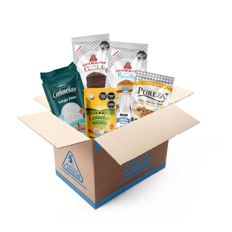 El Box Sin TACC de Molino Cañuelas fue creado para quienes necesitan productos libres de gluten sin resignar sabor. Incluye premezclas Pureza y bizcochuelos Mama Cocina en versiones vainilla y chocolate, perfectos para cocinar rico y apto celíacos. Se completa con arroz, mayonesa y edulcorante clásico para sumar practicidad en el día a día. Una caja inclusiva, deliciosa y con la calidad de siempre.